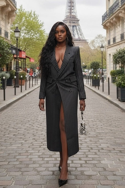 Manteau Long Blazer Élegance – Noir