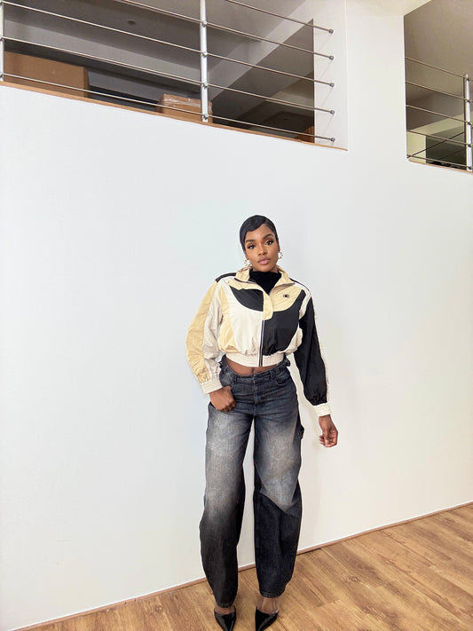 Blazer Cintré Gris à Fermeture Éclair et Détails Modernes