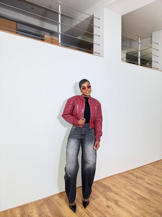 Veste Tressée en Similicuir - Bordeaux Luxe