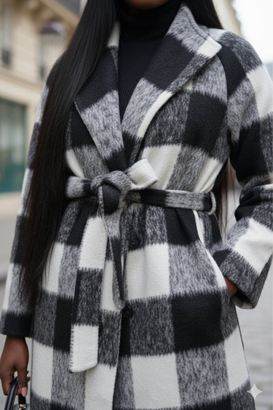 Manteau long à carreaux