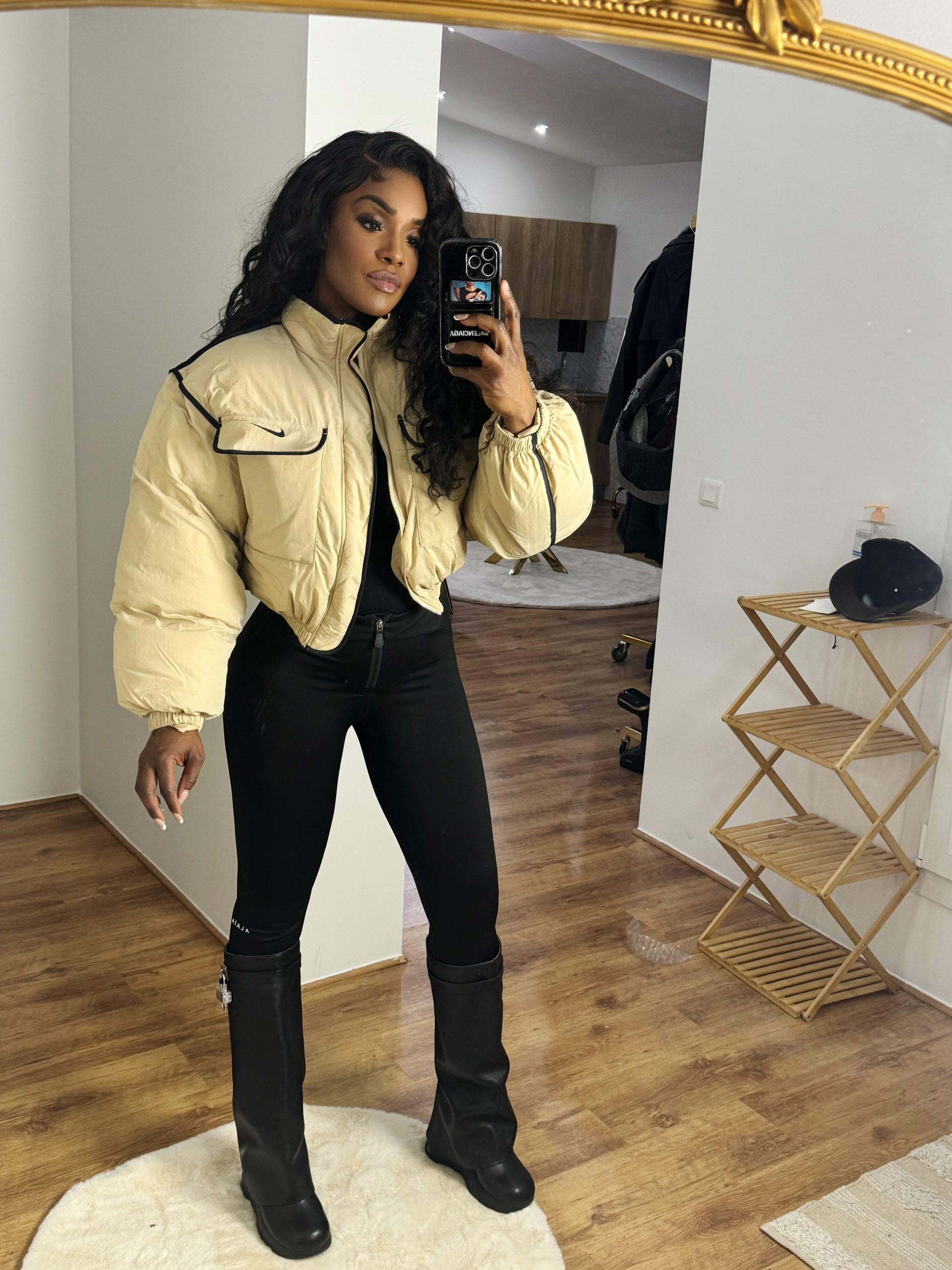 Ajoutez une touche de modernité et de confort à votre garde-robe avec cette veste doudoune croppée beige. Conçue en taille unique, elle s’adapte parfaitement à toutes les morphologies jusqu’à la taille 46, tout en mettant en valeur votre silhouette.