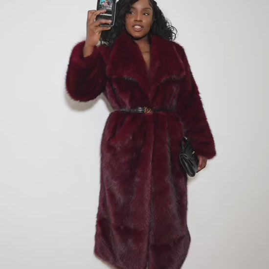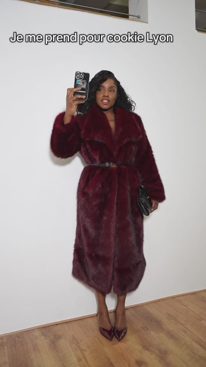 Adoptez un look audacieux et raffiné avec ce manteau long en fourrure bordeaux au design oversize. Une pièce intemporelle qui combine confort, chaleur et style haut de gamme.