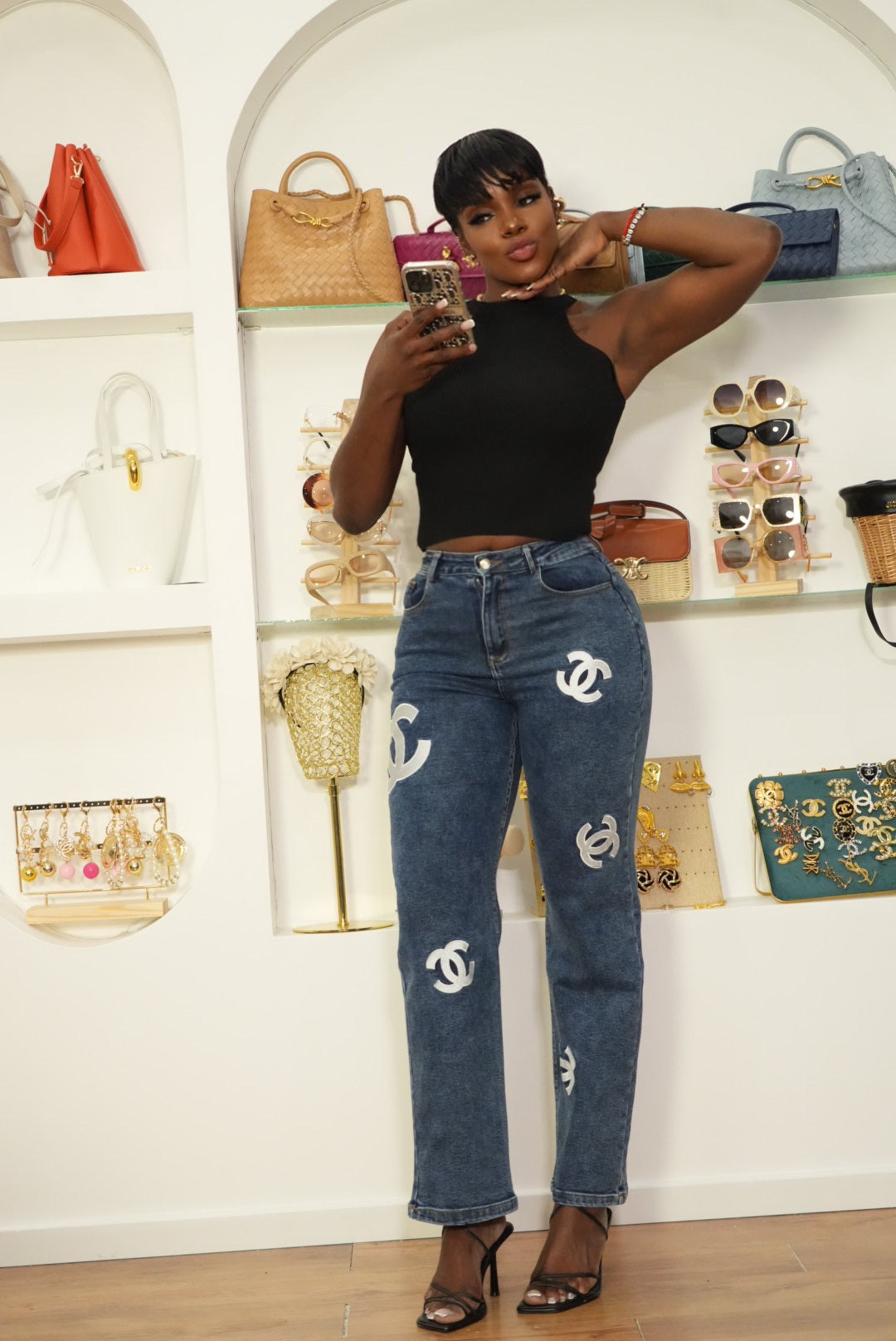 Affiche un style audacieux et ultra-tendance avec notre jean “Luxury Logo”, orné de logos blancs oversize inspirés de l’univers haute couture. Confectionné dans un denim stretch (mélange coton + élasthanne), il épouse parfaitement les formes tout en offrant un confort optimal.