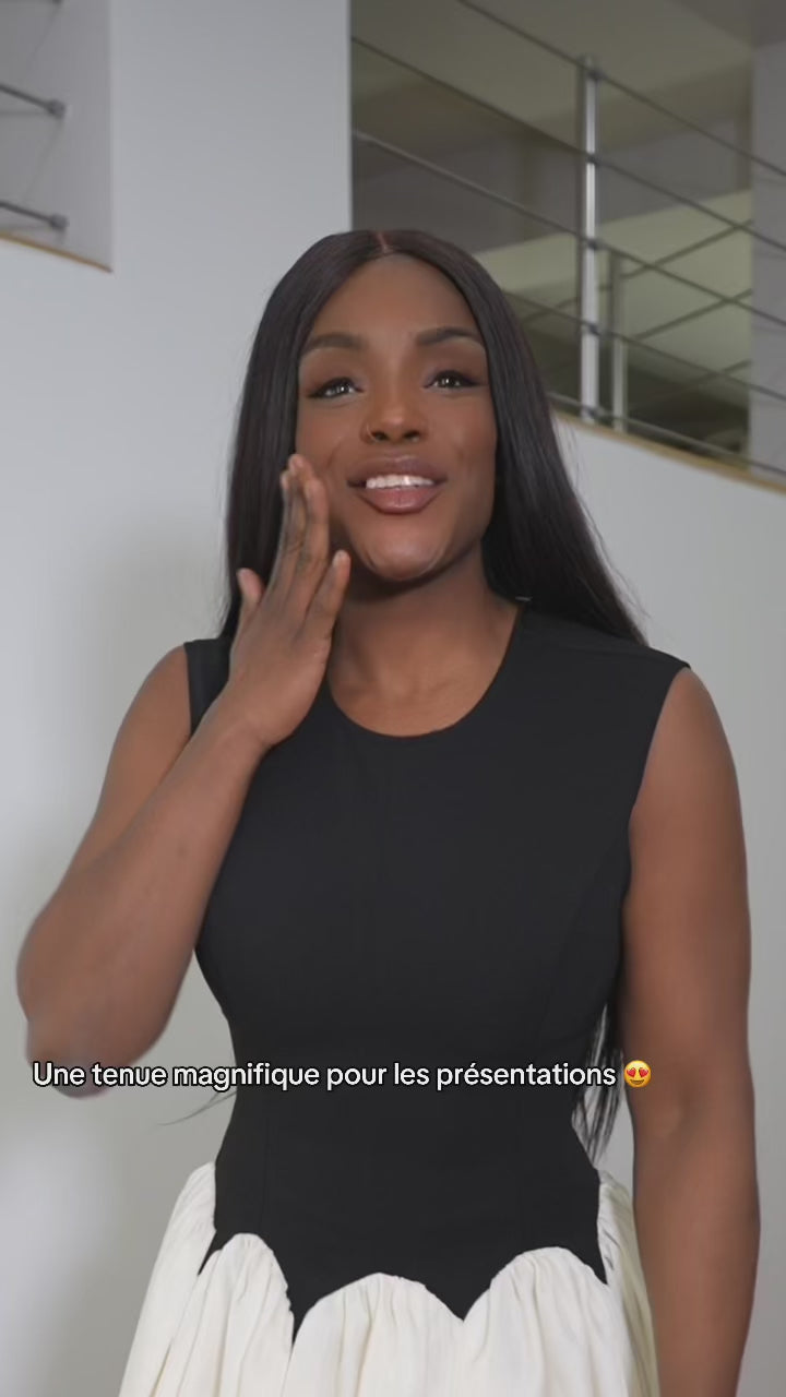 ✨ Inspirée d’un designer iconique, cette robe élégante et sophistiquée incarne le parfait équilibre entre modernité et raffinement. Avec son haut ajusté noir sans manches et sa jupe volumineuse en tulle écru, elle sublime toutes les silhouettes et offre une allure majestueuse.