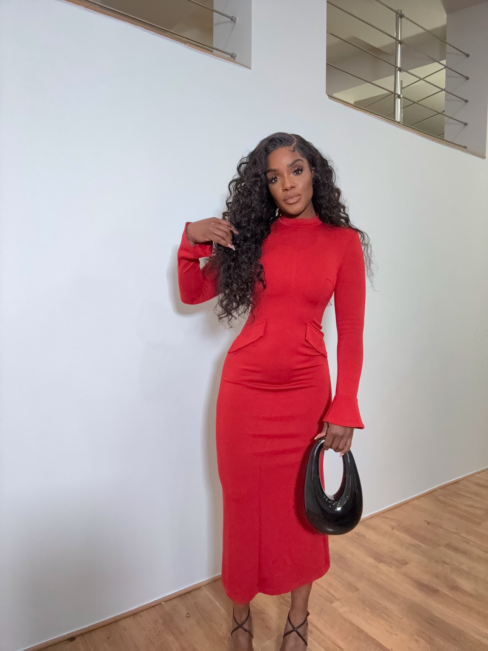 Cette robe midi rouge incarne parfaitement le chic intemporel et la féminité. Avec sa coupe ajustée et son tissu doux, elle épouse les courbes tout en offrant un confort optimal. Son design épuré est sublimé par des détails modernes comme des coutures structurantes et des poches discrètes à l’avant.