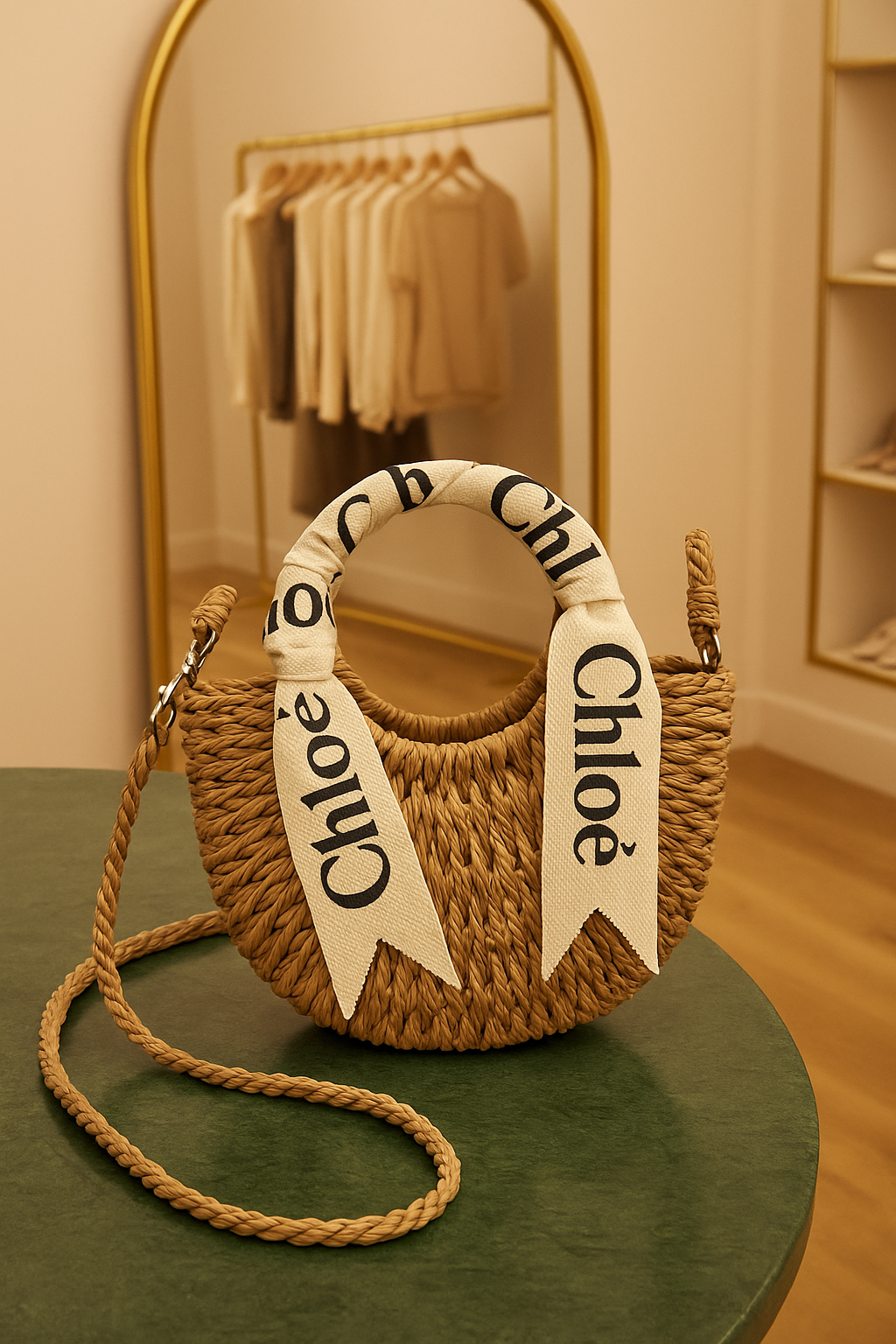 Craquez pour ce sublime sac demi-lune en raphia tressé, parfait pour sublimer vos tenues estivales. Ce modèle naturel est embelli d’un élégant ruban en tissu siglé Chloé, noué à la main pour une touche raffinée et tendance. Léger, pratique et stylé, il vous accompagne aussi bien à la plage qu’en ville.