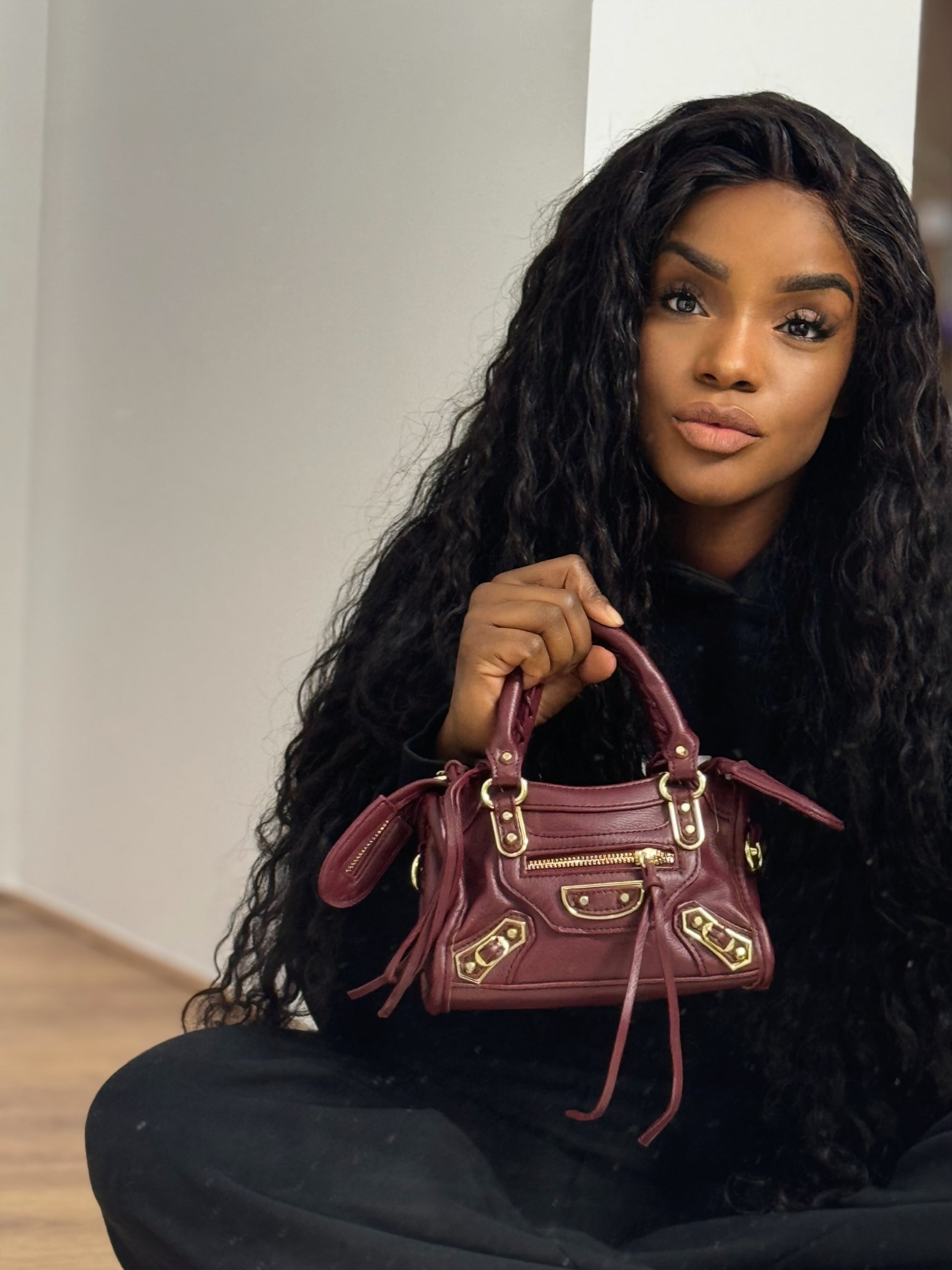 Ce sac élégant, fabriqué en simili cuir de haute qualité, se distingue par sa teinte bordeaux intense et ses finitions dorées raffinées. Avec son format compact et ses détails soignés, il allie style et praticité.