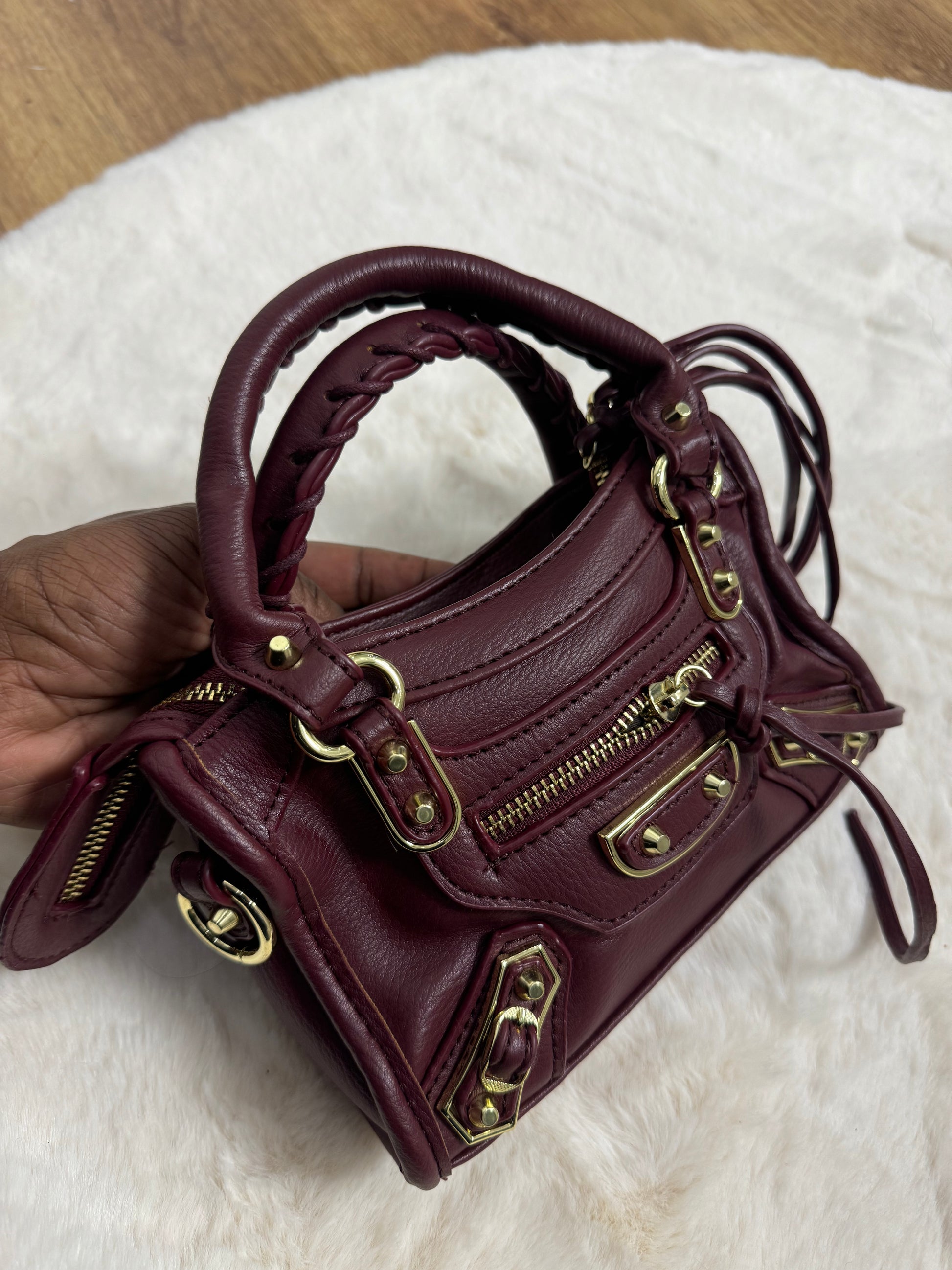 Mini sac à main en simili cuir bordeaux avec finitions dorées